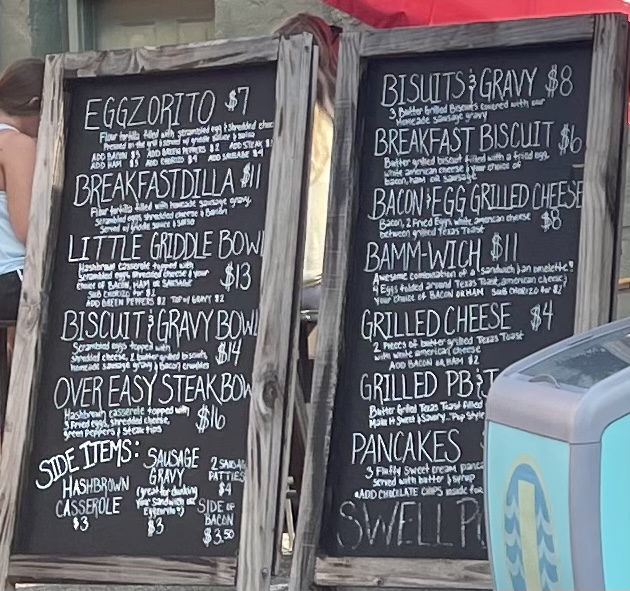 Mixed Berry Preserves, Crispy Bacon and Brie Cheese on Butter Grilled Texas Toast. Make it a Waffle Style Sandwich in Belgian Waffle $2